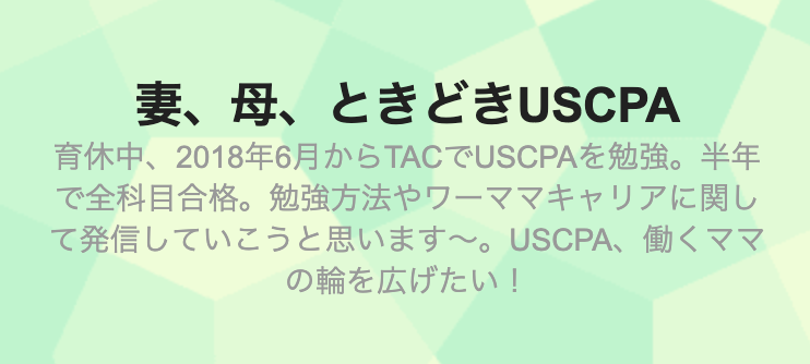 2015年9月からUSCPA取得を目指し学習を始め、2017年2月にUSCPA全科目を達成した『Maki (まき)』さんのブログです。メルマガをメインとした情報配信を行っていますが、そのメルマガ読者さんからの情報をもとに、学習方法のコツや受験体験談、転職体験談などを発信しています。情報源がご自身の体験談だけでないところが、このブログの特長でもあります。また、約2年間の受験者サポート経験から得た知見を集約し、USCPA Kindle書籍も出版しています。